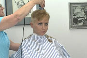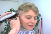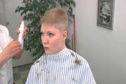 Meet our latest Barbershop Girl. Jessica came to us in dire need of a special Barbershop Girl haircut. With long mid-back length dirty blonde hair our resident Barber patiently takes Jessica through 6 haircuts including a short to the temple undercut and a skin tight high and tight. This selection offers 70 minutes of haircut playtime, a personal interview and a unique story of how our model was ambushed by her mother and a hairstylist in a hair salon. A must see for the true enthusiast.