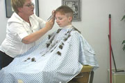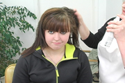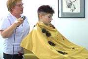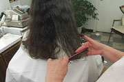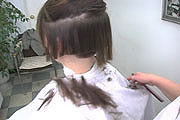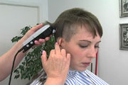 We are proud to introduce to you our latest video production. Our model Natalie is a mother and teacher who was quite enthusiastic about getting her haircut. She was very entertaining and extremely animated to work with. With long below shoulder length hair, Natalie went through 8 different haircuts from long to an extreme buzzed high and tight. This production features 80 minutes of haircut playtime, an assortment of haircuts, buzzing action, interviews and good all-around humor.