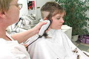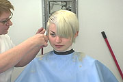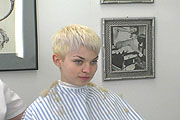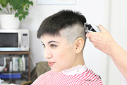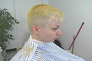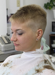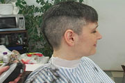 haircut extremely short, she